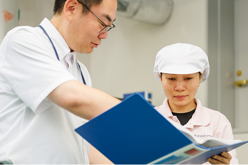 - 工場内をオールバリアフリー、24時間空調管理、全フロアにライブカメラを設置し、安全且つ安心して働ける工場作りを実践